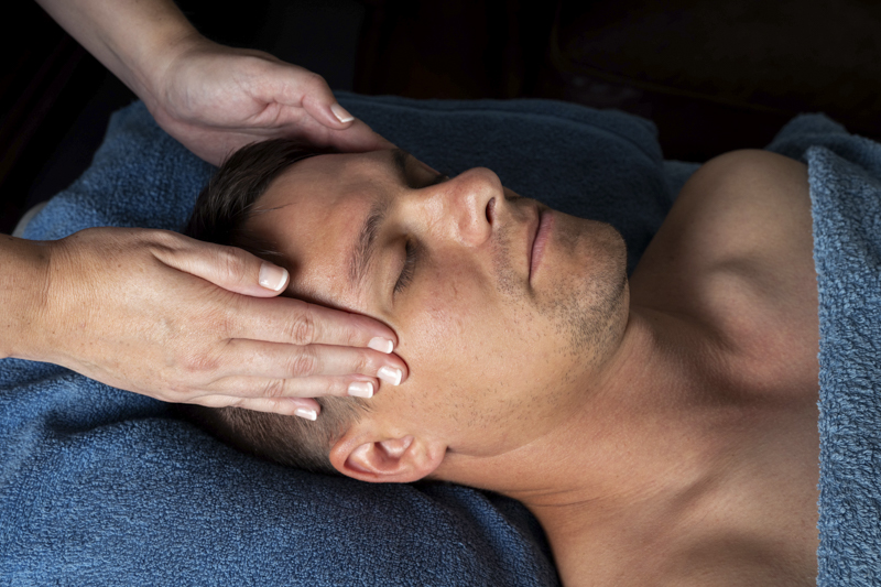 Relaxing head, neck and shoulder massage and working on pressure points, which is great for headaches